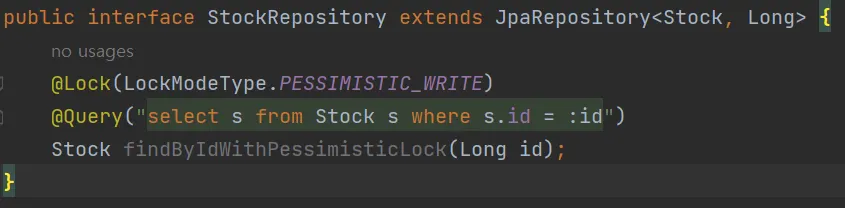 Repository에 Lock을 추가하고 / synchronized 는 삭제하고 새로 만든 findByIdWithPessimisticLock 을 사용해보자.